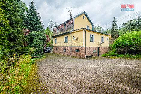 Nabízíme k prodeji jedinečný rodinný dům o užitné ploše 105 m2, umístěný v klidné části obce Damice, pouhých 15 minut jízdy od Karlových Varů a 20 km od Božího Daru. Tento půvabný cihlový dům s podzemním podlažím má celkem 5 pokojů rozprostřených přes 3 nadzemní podlaží. V přízemí naleznete útulný obývací pokoj s krbem, jídelnu, pracovnu a otevřený kuchyňský kout, koupelnu se sprchovým koutem, vanou a WC. V patře domu se nachází prostorná hlavní ložnice, menší ložnice, další WC a sprcha. Dům je vybaven vlastní studnou a vytápění zajišťuje kotel na topný olej s dvěma 200 litrovými nádržemi. K dispozici je také elektrický bojler pro letní měsíce. Na rozlehlém pozemku o velikosti 9749 m2 najdete zastavené nádvoří 789 m2, zahradní domek s kuchyní a posezením, a pro milovníky přírody také vlastní rybník. Pozemky jsou dle Územního plánu určeny k bydlení v rodinných domech, což otevírá další možnosti využití. Přijeďte se sami přesvědčit o mimořádném kouzlu tohoto místa.