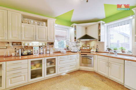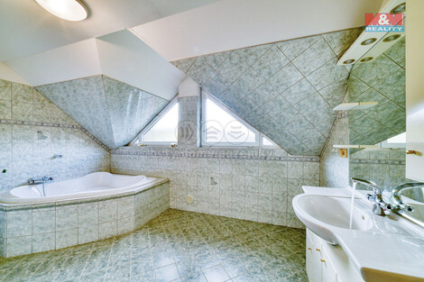 Hledáte dům v těsné blízkosti lázeňského města Františkovy Lázně? Pokud ano, tak právě pro Vás máme v nabídce rodinný dům postavený v roce 2002 s možností dvougeneračního bydlení. Dům je řešen vstupem do spojovací chodby, nalevo se vchází do garáže pro dvě osobní auta, za ní je dílna, která je celá podsklepená. Vlevo se vchází do obytné části domu, kde se nachází ložnice, prádelna, šatna, koupelna s WC, samostatná toaleta, kuchyň, obývací pokoj se schodištěm, vstupem na terasu a do bazénu. V prvním patře jsou dva podkrovní pokoje s koupelnou a toaletou. Na půdě je agregát pro centrální větrání domu, který je vybaven centrálním vysavačem a podlahovým topením. Příjezd ke garáži zajišťuje elektrická brána. K domu náleží zahrada o celkové ploše 1252 m2 s centrálním zaléváním zahrady, předzahrádka s jezírky a 16 metrů hluboká vrtaná studna. V případě zájmu Vám zajistíme optimální variantu financování. Pokud hledáte dům bez dalších úprav a investic, tak neváhejte a domluvte si prohlídku.