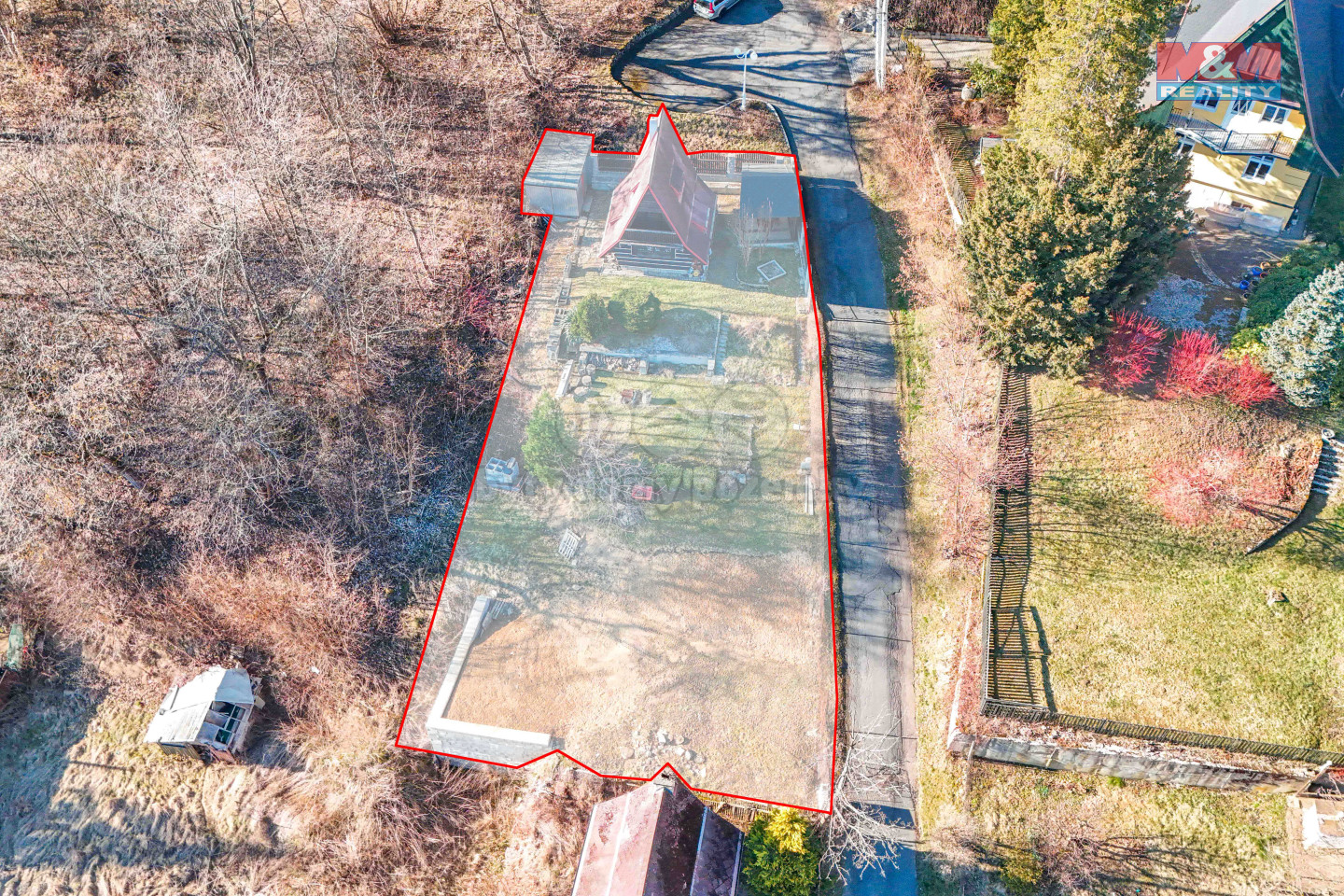 Nabízíme k prodeji chatu v klidné části Mariánských Lázní, v části Úšovice. Chata je ideální pro rekreační účely a je umístěna na pozemku o rozloze 518 m2, který je dle územního plánu možné využít i pro budoucí výstavbu rodinného domu. Dřevěná udržovaná chata nabízí útulnou atmosféru s malou ložnicí a balkonem v patře. Inženýrské sítě jako vodovod a elektřina jsou na hranici pozemku, kanalizace je dostupná v přístupové silnici. Tato nemovitost představuje skvělou investici pro ty, kdo hledají klidné místo k odpočinku nebo plánují výstavbu nového domu. Neváhejte a využijte tuto jedinečnou příležitost!