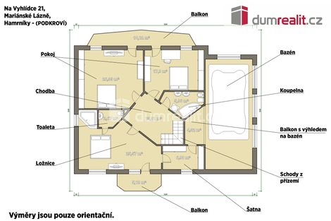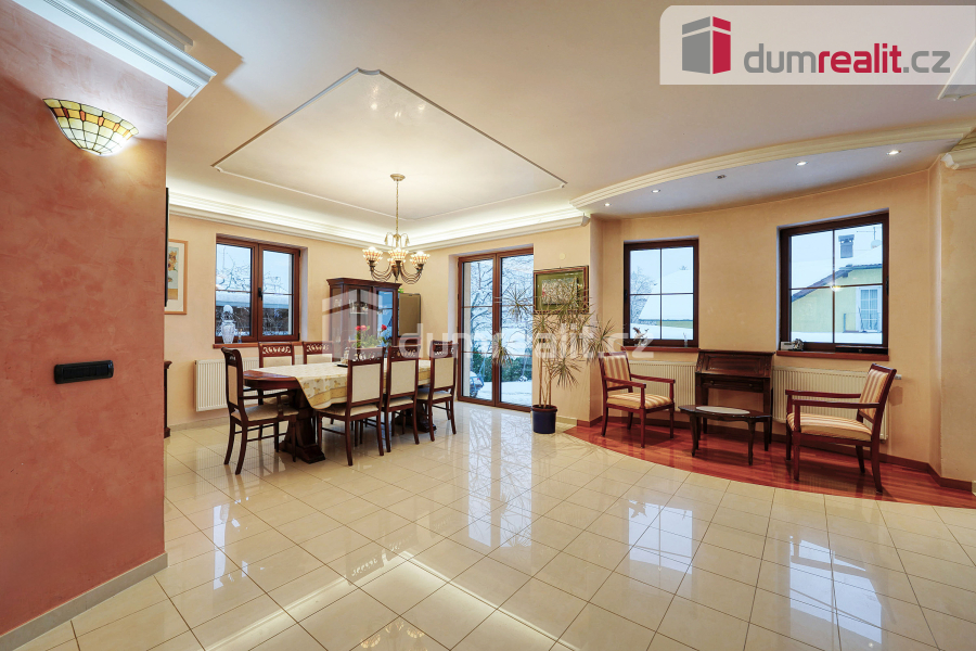 Dumrealit.cz Vám zprostředkuje ke koupi rodinný dům 6+1 o celkové ploše 440 m2. Tento impozantní dvoupatrový a podsklepený dům se nachází v malebné lokalitě Hamrníky v Mariánských Lázních, v ulici Na Vyhlídce. Hlavní vlastnosti: - Rozloha: Celková užitná plocha domu dosahuje 440 m2, s terasami zahrnuje zastavěnou plochu 255 m2. - Rozvržení: Dispozice domu s více než 7 místnostmi na třech patrech, což poskytuje dostatek prostoru pro celou rodinu. - Wellness: K tomu všemu dům disponuje luxusní wellness s velkým 45 m2 bazénem s protiproudem o hloubce 1,75m, ideálním pro odpočinek a relaxaci. Popis jednotlivých pater: - Přízemí: Do domu se dostanete nádhernými masivními dveřmi. Otevřený prostor spojuje moderně vybavenou kuchyni s krásným a otevřeným obývacím pokojem se vstupem na terasu. Monumentální sloupy přidávají domu jedinečný šarm a procházejí i prvním patrem domu. K dispozici je samozřejmě také koupelna a ložnice pro hosty. - První patro: Přes krásné schodiště se dostanete do prvního patra, kde najdete celkem tři ložnice. Jedna z ložnic má vlastní vířivou vanu a šatnu. V tomto patře se nachází i relaxační prostor s výhledem na bazén, ideální pro příjemné chvíle odpočinku. V prvním patře je z podkroví vyveden světlovod, který přes prosklenou podlahu vytváří hologram obrazu a poskytuje světlo navíc v patře a přízemí domu. Suterén: - Prostory v suterénu jsou zařízeny pro rodinné sešlosti a nabízí skvělý výhled přímo do bazénu přes velký zasklený stavební otvor. Navíc samozřejmě poskytují dostatečný prostor pro uskladnění Vašich věcí. Mimo jiné i zde naleznete další koupelnu se sprchovým koutem. V nynější skladové místnosti zde v suterénu měla dle projektu být garáž a před dostavbou domu byl projekt upraven a je zde skladová místnost, která však je opatřena i garážovými vraty a v případě zájmu nového majitele lze znovu obnovit. Lokalita: - Dům se nachází v krásně klidné lokalitě Hamrníky v Mariánských Lázních, která je vyhlášená pro klidné bydlení. Dostupnost a vybavenost: - Dostupnost Mariánských Lázní je perfektní po rychlostní silnici 21, výborné spojení poskytují České Dráhy, kde sem zajíždí i nejrychlejší spoje. Vybavenost Mariánských Lázní jako lázeňského města byla vždy pověstná. - Zabezpečení domu: dům je opatřen bezpečnostním a kamerovým systémem. Přijďte si prohlédnout tento jedinečný dům a dejte mu šanci stát se místem, kde začne nová kapitola Vašeho života. Pro více informací či domluvení prohlídky nás neváhejte kontaktovat. Financování tohoto krásného domu pro Vás zcela zdarma zajistíme za nejlepších podmínek na trhu. Ev. číslo: 645650. Energetický štítek: C (34 kWh/m2/rok).
