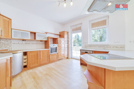 Prodej rodinného domu v tiché, klidné části Úšovic. Dům je velmi zajímavě řešen, kdy v přízemí je velká kuchyně s jídelnou a obývací částí s krbem, řešena jako jeden velký, vzdušný prostor. Koupelna, WC pro hosty, šatna, technická místnost, ložnice, to jsou další místnosti v přízemí domu. Po schodišti se vyjde do prvního patra, kde v levém křídle jsou dva pokoje a koupelna a v pravém křídle další dva pokoje s koupelnou. V celém domě podlaha dřevěná plovoucí, v koupelnách dlažba. Prostornými okny a dveřmi se do místností v přízemí dostává dostatek slunečního svitu. Terasa, část které je připravena pro vybudování zimní zahrady, je orientovaná na jih. Pod stromy z východní strany zahrady je terasa pro venkovní posezení a grilování. Vlastní studna, zabudované sprinklery pro zavlažování zahrady, vysazený porost z různých druhů listnatých a jehličnatých stromů a keřů dává pozemku jedinečný ráz a nabízí zákoutí pro relax. Rádi vám při prohlídce řekneme i další, podrobnější informace.