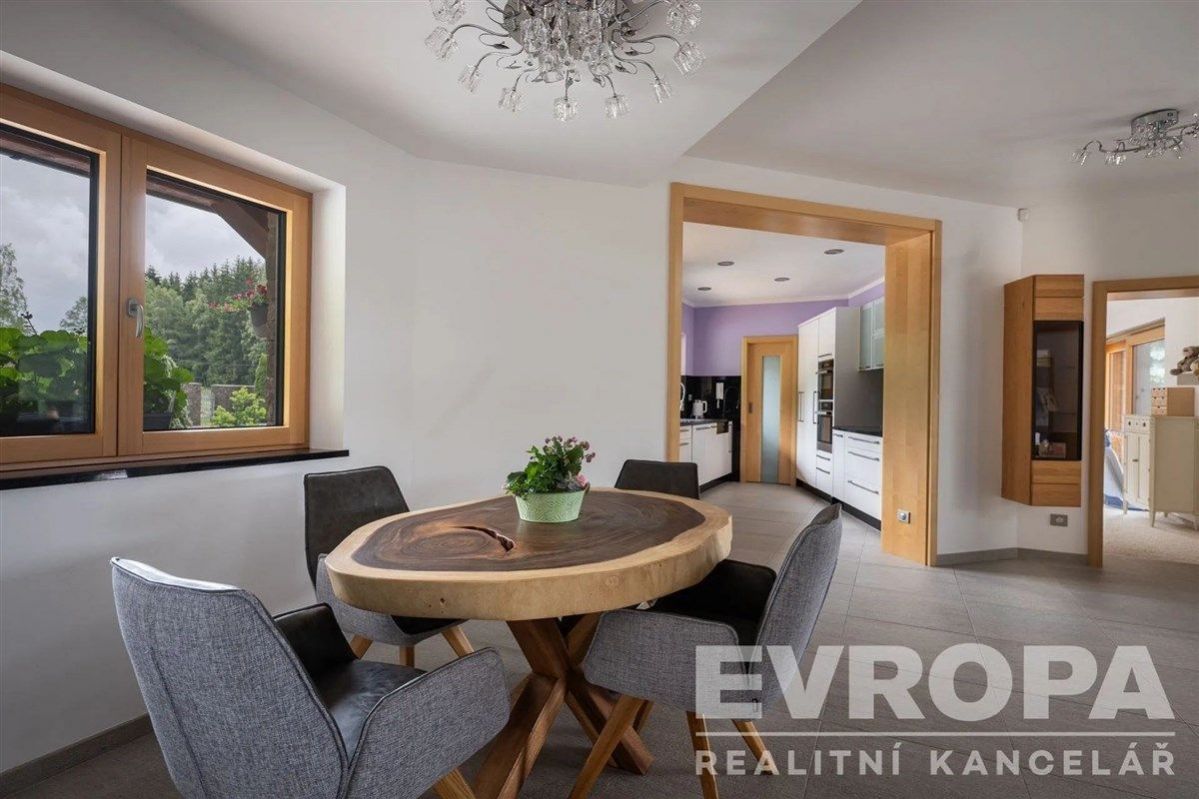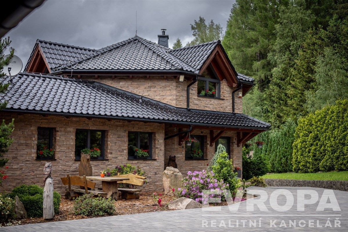 Skvostné rodinné sídlo v srdci Krušných hor. Představte si místo, kde se bydleni setkává s přírodou. Místo, kde každý den začíná nádherným výhledem do údolí Krušných hor a kde každý kout domova nabízí komfort a pohodu. Přesně tohle nabízí naše exkluzivní rodinné sídlo, které čeká na svého nového majitele. Tento velkorysý dům, či spíše vila, je navržen pro ty nejnáročnější z vás, kteří hledají něco opravdu výjimečného. Už při prvním pohledu vás okouzlí prostorný a světlem prozářený obývací pokoj s krbem, kde se snoubí osobitý styl s pohodlím. Prakticky zařízená kuchyň s jídelním koutem a komorou splní všechna vaše kulinářská přání. Dva nezávislé pokoje jeden s koupelnou a šatnou, které mají přímý vstup na terasu ideální místo pro ranní kávu s výhledem na probouzející se přírodu. Otevřené patro galerie s ložnicí a vlastní koupelnou nabízí ničím nerušený výhled do okolní krajiny. Pro relaxaci je tu domácí wellness s bazénem 4x10 m, saunou s odpočívárnou a vířivkou výhledem do údolí, klubovna. Ať už hledáte únik před stresem každodenního života, nebo místo pro setkávání s přáteli, toto sídlo vám poskytne obojí. Další prostory jako klubovna, herna či technická místnost jsou samozřejmostí. Celý pozemek, o rozloze 9319 m, je chráněn betonovým plotem obloženým břidlicí a 400KS čtyřmi sty kusy vzrostlých tůjí, což zaručuje naprosté soukromí. Na nádvoří domu se nachází sousedící dům o ploše 230 m s prostornou garáží 130 m, která pojme až čtyři vozy, motorky, kola a zahradní techniku. K dispozici byt 60m2 pro hosty s terasou, technické zázemí, dílna, myčka. Fotovoltaická elektrárna FVE 20 kWp postavená na pozemku zajišťuje energetickou soběstačnost domu, nebo dokonce zajímavý příjem. A pokud jde o technické zázemí, dům je vybaven podlahovým topením vytápěným dvěma tepelnými čerpadly 2 x IVT 12 kw se zemním kolektem 2 x 400m. Země - voda v kombinaci s lokálním vytápěním krbem, bezpečnostními rozvody pro instalaci kamer, zásobníkem na vodu o objemu 400 l a vlastní vratnou studnou. Místo a zasazení domu do přírody okolních hor je nepopsatelné, musí se vidět. Přijďte se přesvědčit sami a nechte se okouzlit tímto jedinečným sídlem, které nabízí vše, co si můžete přát. <a href="https://www.eurobydleni.cz/komercni-nemovitosti/skladovaci-prostory/jihlava/obec-radkov/prodej/"><strong>Prodej skladu Radkov</strong></a>
