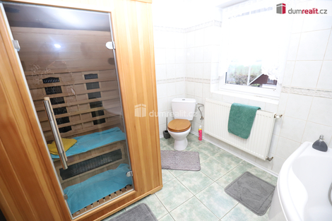 Dumrealit.cz Vám zprostředkuje krásný útulný rodinný dům v klidné ulici Zlatá v širším centru Chebu. Novostavba rodinného domu dokončeného před 20ti lety nabízí dispozici 5+kk s tím, že v přízemí je velkorysý obývací pokoj propojený s kuchyňským a jídelním koutem, dále pokoj (současně užívaný jako šatna), špajzka, koupelna, předsíň, chodba a technická místnost odkud se dá projít na zahradu. V patře jsou 3 pokoje (na fotografiích jsou pouze 2, jeden pokoj se nefotil), koupelna s vanou a toaletou (sauna nezůstává), chodba a vlez na půdu, kde je další úložný prostor, Dům o zastavěné ploše 97 m2 obklopuje zahrada o celkové rozloze 336 m2. Celková výměra parcely je tedy včetně zahrady a zastavěné plochy 433 m2. K dispozici je parkovací přístřešek, za vjezdovou branou za sebou mohou parkovat až 3 automobily. Na zahradě je venkovní WC, zastřešený prostor vhodný pro posezení apod., dále technická místnost. Stavba stará 20 let vyhovuje a splňuje dnešní nároky na bydlení, útulný obývací pokoj propojený s kuchyní dýchá rodinným teplem, dům nabízí soukromí všem členům i větší rodiny. Toaleta je v každém patře. Vytápění zajišťuje plynový kondenzační kotel, který zároveň ohřívá teplou vodu. Alternativou a doplňkovým zdrojem tepla jsou krbová kamna. Stavba je připojena na veškeré inženýrské sítě včetně plynu, elektřiny, vodovodního řadu i kanalizace. V blízkosti je veškerá občanská vybavenost, do centra Chebu je to 5 minut jízdy autem. V Chebu jsou veškeré obchody, restaurace, úřady, sportoviště, příjemně se dá trávit volný čas ve volnočasovém areálu Krajinka poblíž areálu chebského hradu. Do sedmi minut jízdy autem se nachází OC Dragoun, OBI, Kaufland, Sportissimo, JYSK, TESCO, Planeo elektro a další obchody. Cheb nabízí kompletně opravené náměstí, kde najdete vyhlášené restaurace Hvězdu či U Krále Jiřího. Do deseti minut jízdy je Svatý Kříž s obrovskou tržnicí, kde můžete výhodně nakupovat, je zde také Travel Free Shop. V Chebu je několik nádherných kostelů včetně kostelu sv. Mikuláše a Alžběty. Město se nachází 9 km od Německa, kde je jak možnost výhodných nákupů tak finančně zajímavého pracovního uplatnění. Cena zahrnuje provizi RK a veškerý právní servis. Ev. číslo: 653215. Energetický štítek: F (30 kWh/m2/rok).