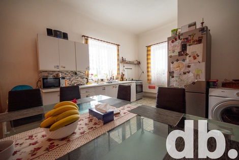 Nabízíme k prodeji volně stojící, částečně podsklepený rodinný dům o dvou nadzemních podlažích a sedlovou střechou s podkrovím. Sklepní místnosti mají podlahovou plochu 22 m2. V 1. nadzemním podlaží se nachází byt s dispozicí 4+1 o podlahové ploše 136 m2. Ve 2. nadzemním podlaží se pak nachází další bytové prostory o podlahové ploše 94 m2 vyžadující celkovou rekonstrukci. V roce 2015 proběhla dílčí rekonstrukce spočívající v částečné výměně oken za plastová a modernizací koupelny v 1. NP. Vytápění domu je řešeno ústředním kotlem na tuhá paliva, ohřev TUV el. boilerem, v kuchyni starší kuchyňská linka a sporák na PB. V koupelně rohová vana, umyvadlo. Dům je napojený na rozvody elektro, odběr vody z vlastní studny, odkanalizování do vlastní žumpy. Severně od rodinného domu se nachází zděná dvoupodlažní stodola zastřešená sedlovou střechou ve stavu vyžadující rekonstrukci. Nabídka je vhodná k bydlení, případně podnikání, k vytvoření nájemních prostor. Kupující může uvažovat i o potenciálu k rozdělení pozemku a stavbě dalšího domu, případně o prodeji části pozemku.