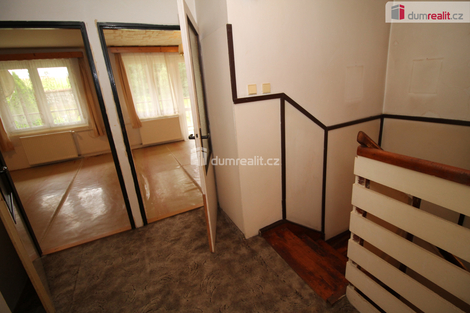 Dumrealit.cz Vám zprostředkuje koupi pěkného domu vhodného k trvalému bydlení v obci Staré Sedlo nedaleko obce Teplá u Mariánských Lázní. Cihlový dům (škvárobeton) o dispozici 4+kk a celkové rozloze 120 m2 nabízí v přízemí prostorný obývací pokoj s kuchyňským koutem, dále předsíň, halu, plnohodnotnou koupelnu s toaletou, vanou, dále komoru pod schody a technickou místnost přístupnou z předsíně. V patře je pak další toaleta, kde je zároveň umístěn bojler na ohřev teplé vody, dva pěkné velké pokoje, oba s přístupem na balkon a třetí pokoj, který se dá užívat jako pracovna, kancelář, úložná komora či pokoj pro hosty atd.. Okna jsou již plastová, na podlahách je kombinace koberce, dlažby a linolea, stav je velmi udržovaný, funkční, s malými úpravami ihned k nastěhování. Výhodou řadového domku je jeho umístění na kraji což umožňuje příjezd a přístup ze strany přímo na pozemek, kde jsou příjezdová vrata. Z přední strany pozemek není oplocen a na dlouhé příjezdové cestě můžete zaparkovat až 4 automobily za sebou, stejně tak můžete parkovat či zastavit na přilehlé cestě, která již na konci vede do lesa. Pozemek o celkové rozloze 487 m2, kdy větší část je za domem, je na konci pozemku ukončen malým svahem (cca poslední 3 metry), kde by bylo ideální místo na vytvoření okrasné skalky, dále pozemek nabízí dost prostoru pro další zahrádkářské aktivity, každý dle svého uvážení a potřeby. Voda je z obecní studny, ze které čerpají všechny 4 řadové domky, vody je zde dostatek pro všechny. Odpad je do společného septiku s přepadem, který se nyní čerstvě vyvezl (po třech letech aniž by to úplně potřeboval). Topení zajišťuje kotel na pevná paliva. Chata je na nádherném klidném místě zároveň blízko civilizace, v případě potřeby je nejblíže městečko Teplá, kde je veškerá občanská vybavenost. Kompletně nově byla svedena srážková voda do dešťové kanalizace, kde na kraji pozemku u silnice jsou kompletně nové odpady. Na domě neváznou žádné zástavy ani břemena. Cena zahrnuje právní servis a provizi RK. V případě zájmu Vám doporučíme naše prověřené hypoteční poradce. Ev. číslo: 654876. Energetický štítek: G (20 kWh/m2/rok).